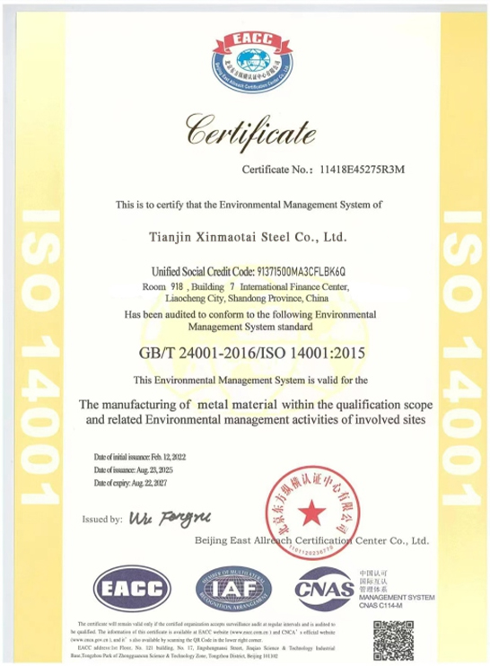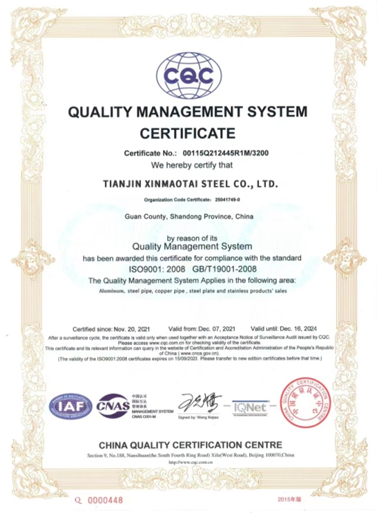 Tianjin Xinmaotai Steel Materials Co., Ltd. covers a wide range of metal products, including carbon steel coils, carbon steel round bars, galvanized pipes, galvanized sheets, galvanized coils, welded pipes, seamless pipes, and more. Since its establishment, we have adhered to the corporate spirit of "Quality First, Reputation First, Management First, Service First" and are committed to becoming a leader in the steel industry. We continuously improve product quality and service levels, providing customers with higher quality and more efficient metal product solutions. We look forward to working with friends from all walks of life to create a better future together!